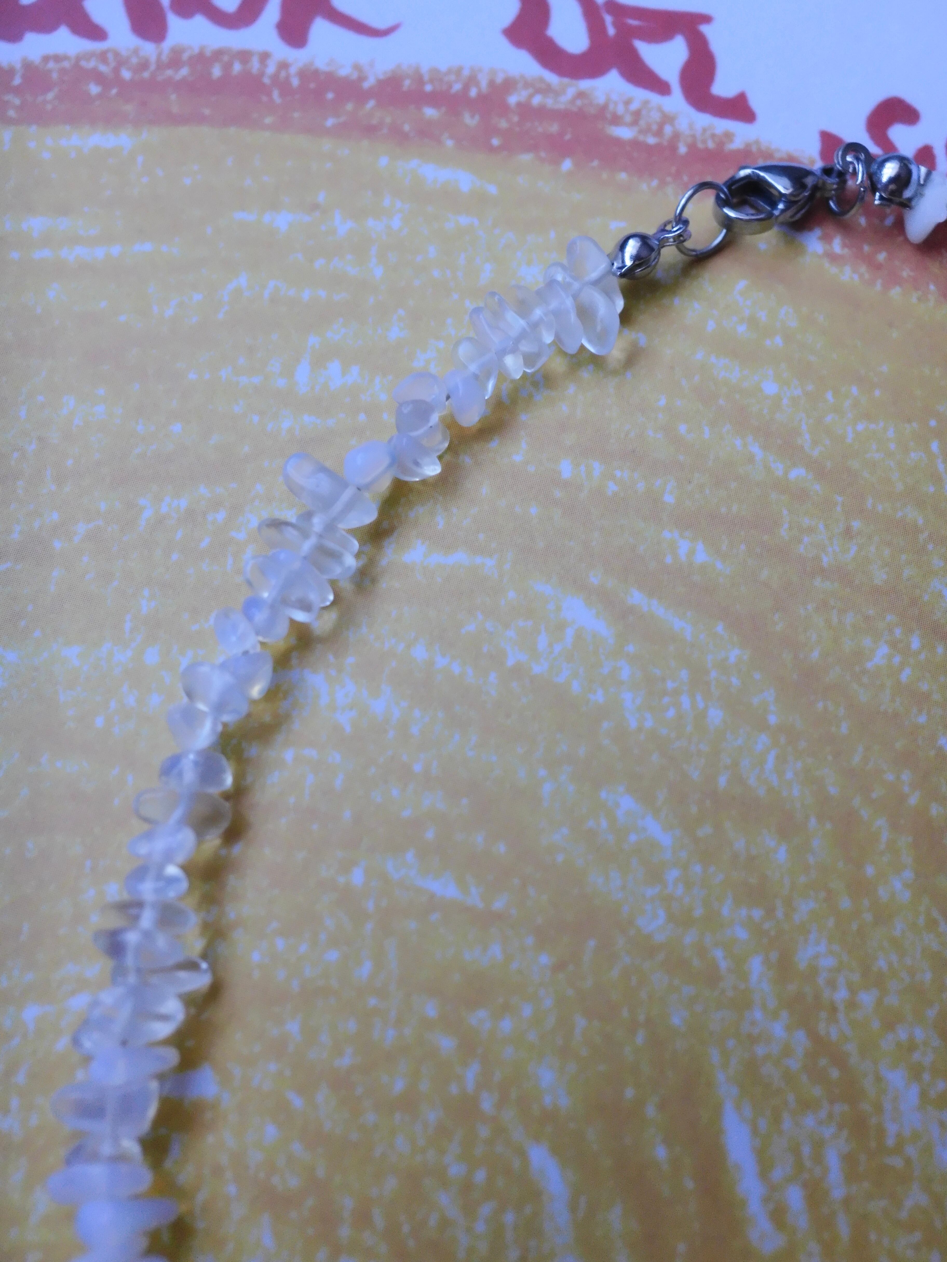 白い珊瑚と天然石のホワイトオパール、ヴィンテージのブルーのお花パーツを組み合わせたネックレス