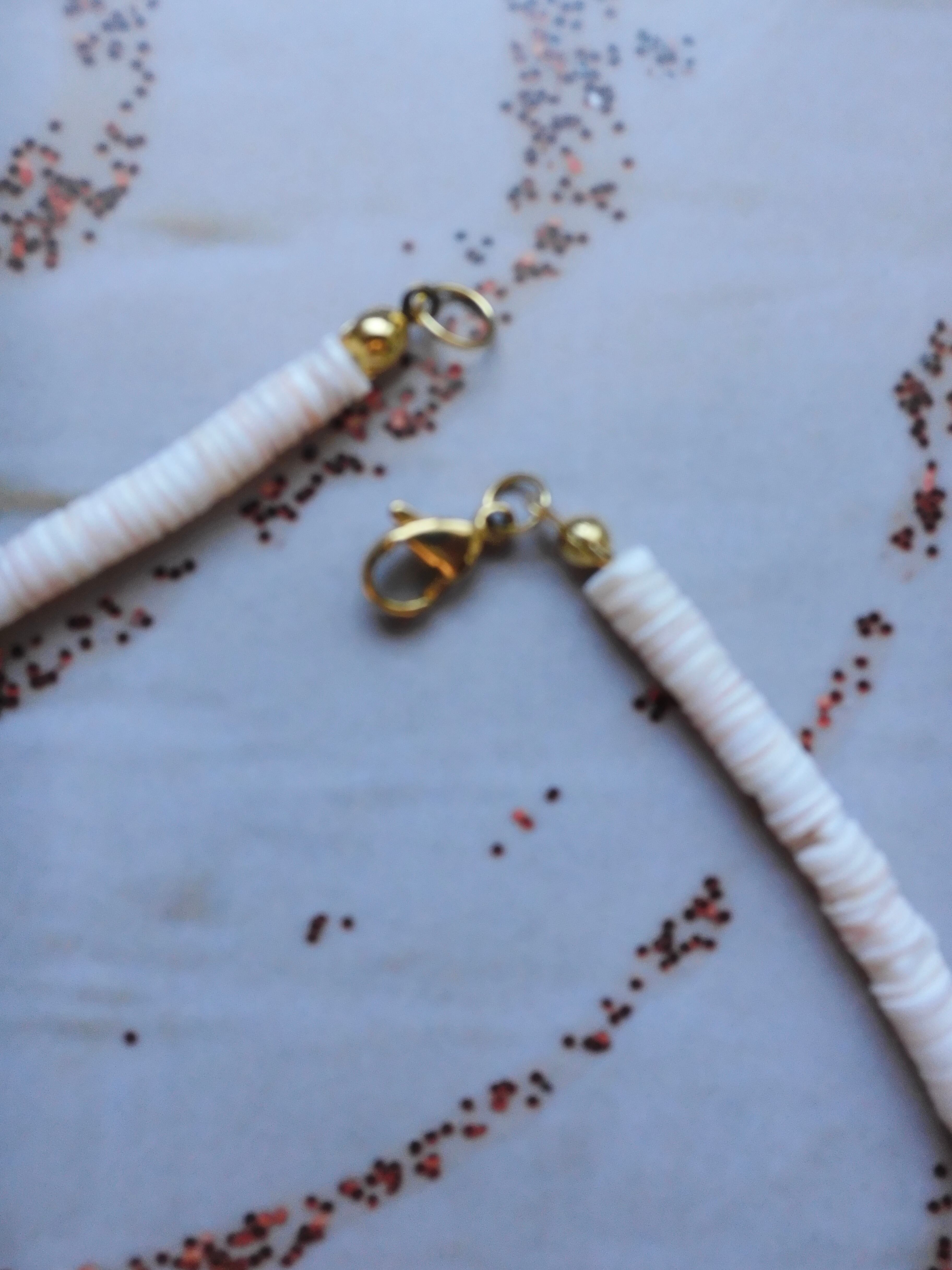 シェルネックレスにパープル×レッドカラーのベネチアンビーズを組み合わせたネックレス