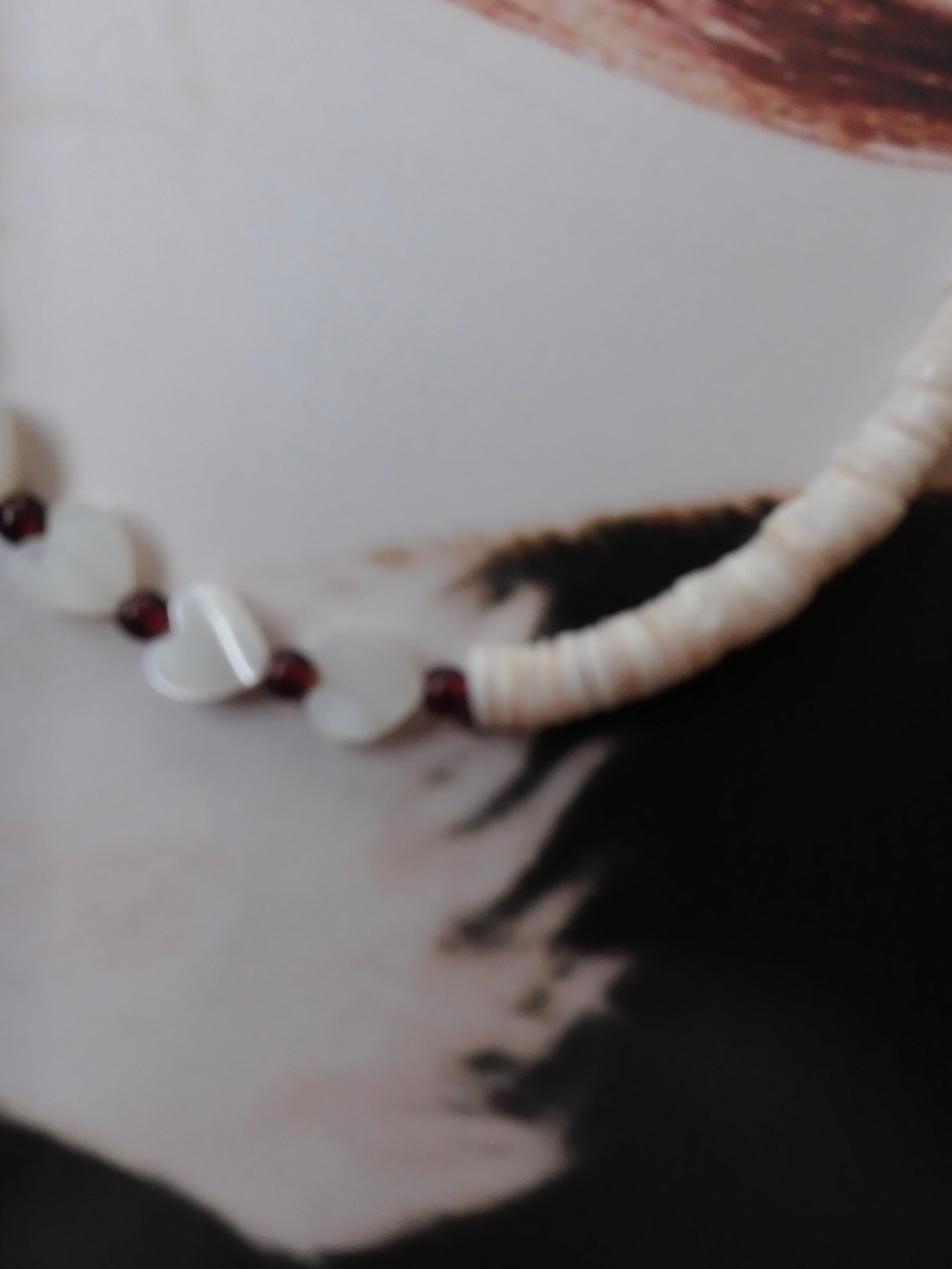 ハートの間にはワインレッドのチェコガラスビーズを組み合わせた、甘すぎない可愛さのネックレスです
