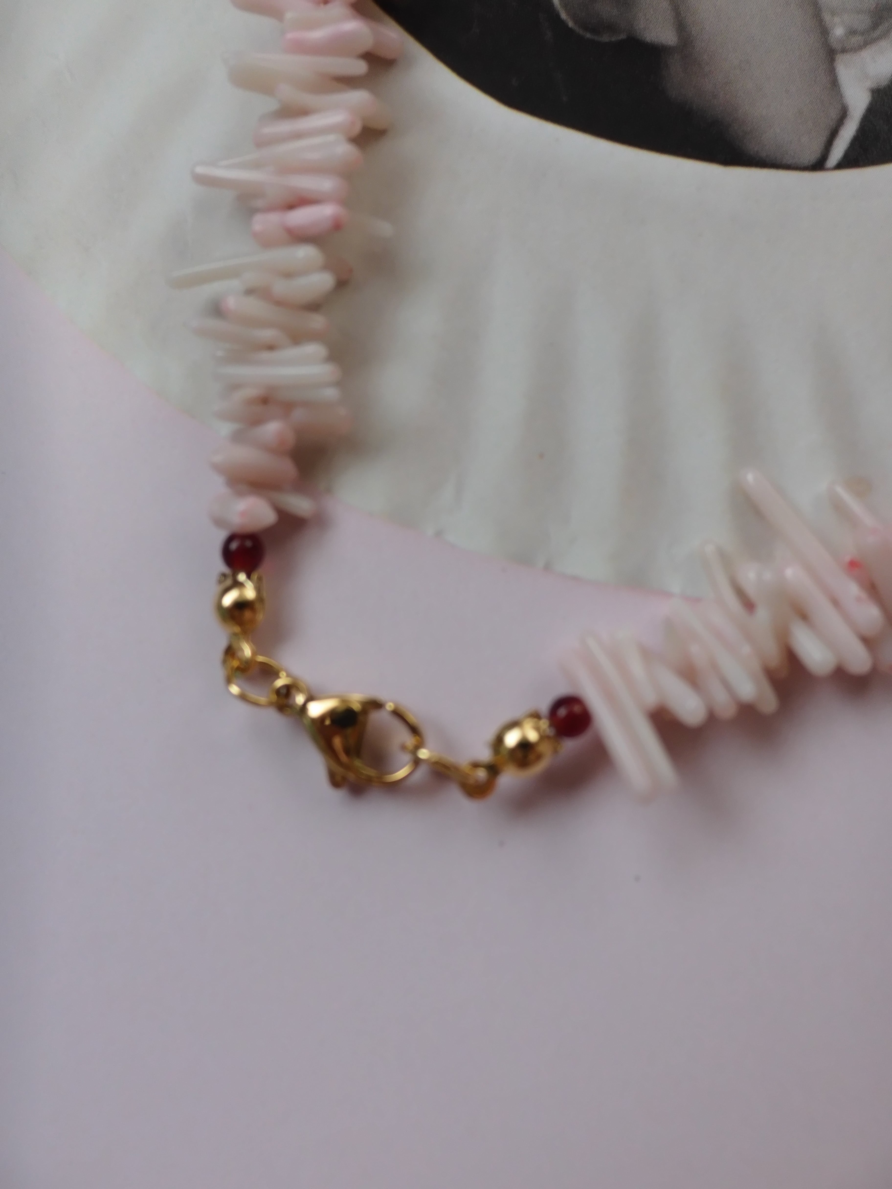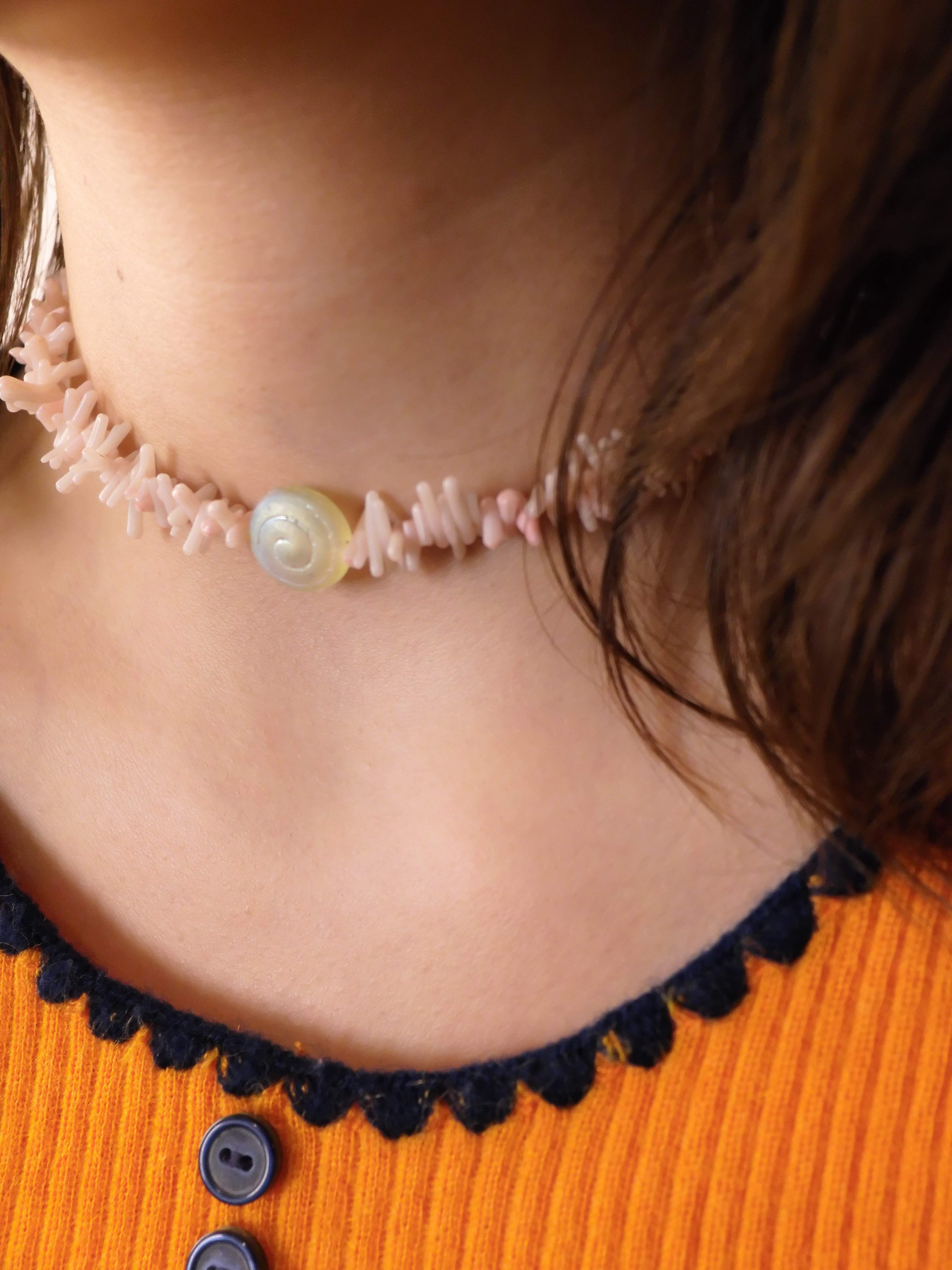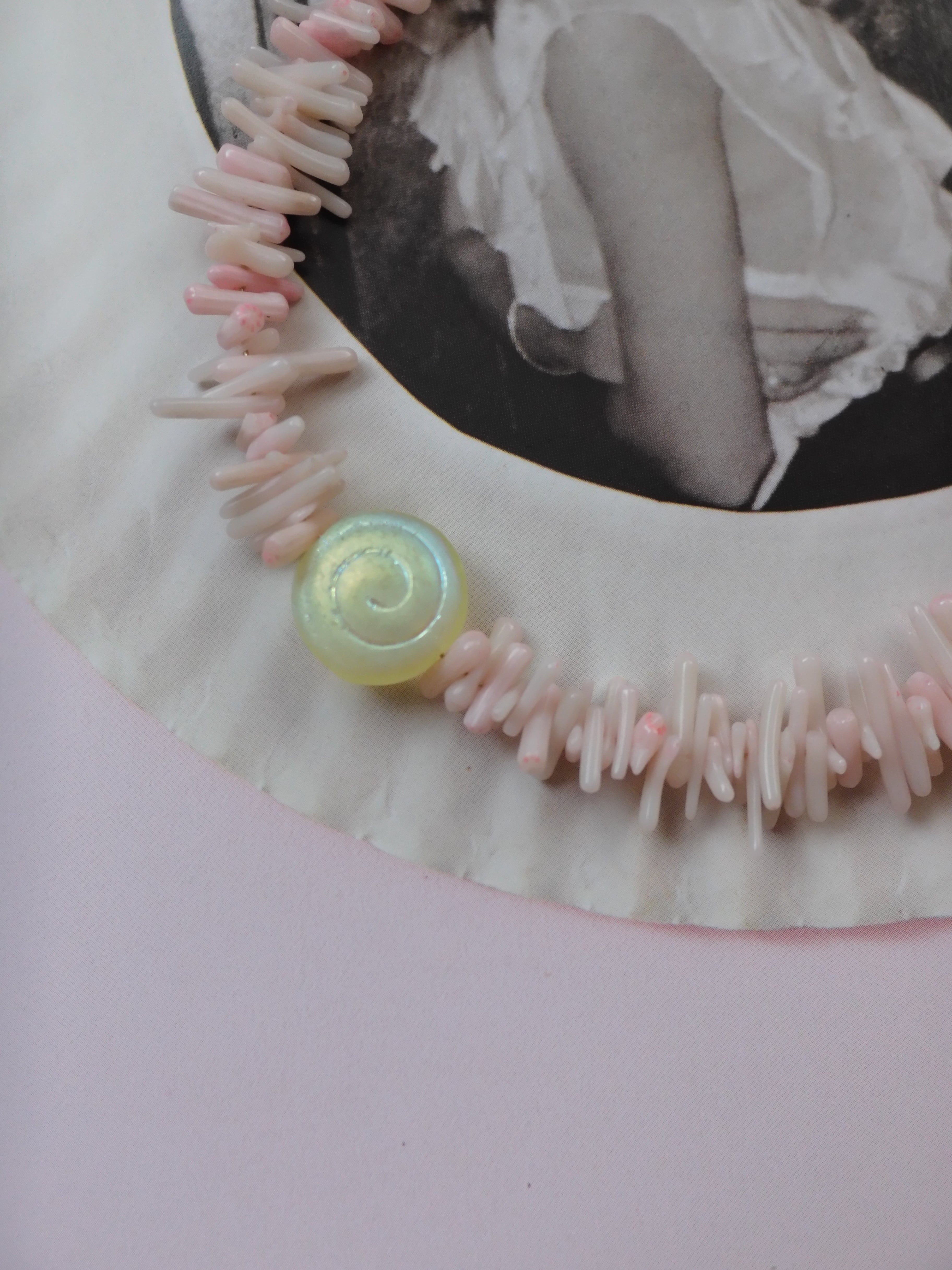 pink coral + cinnamon roll necklace